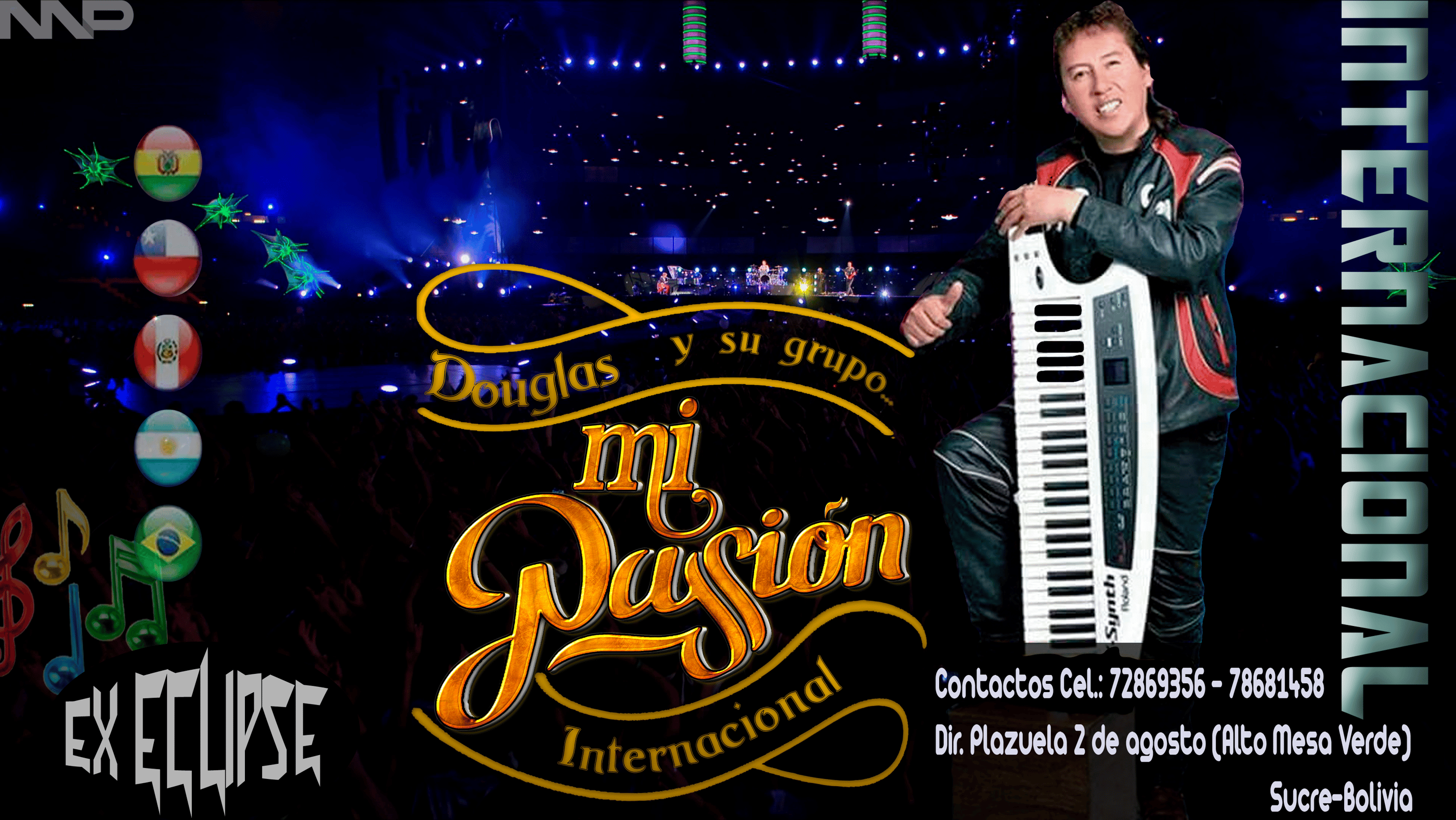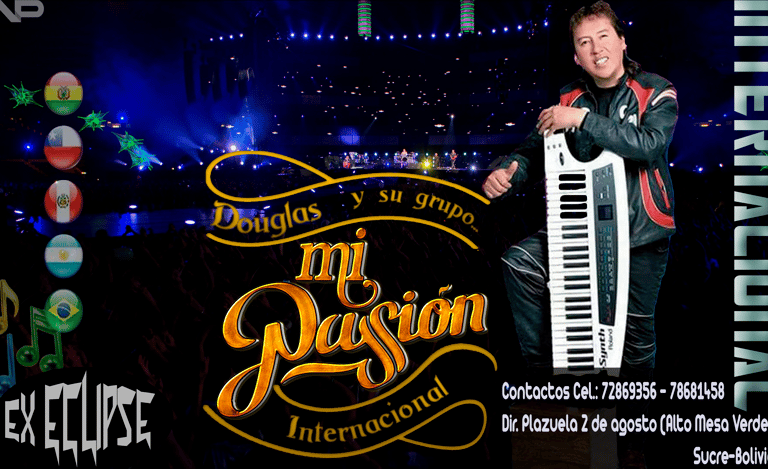 Hola! Soy Douglas... escritor y compositor de música tropical con alma vibrante y ritmo contagioso, creador del grupo Internacional "Mi Pasión" de Sucre - Bolivia xEclipse