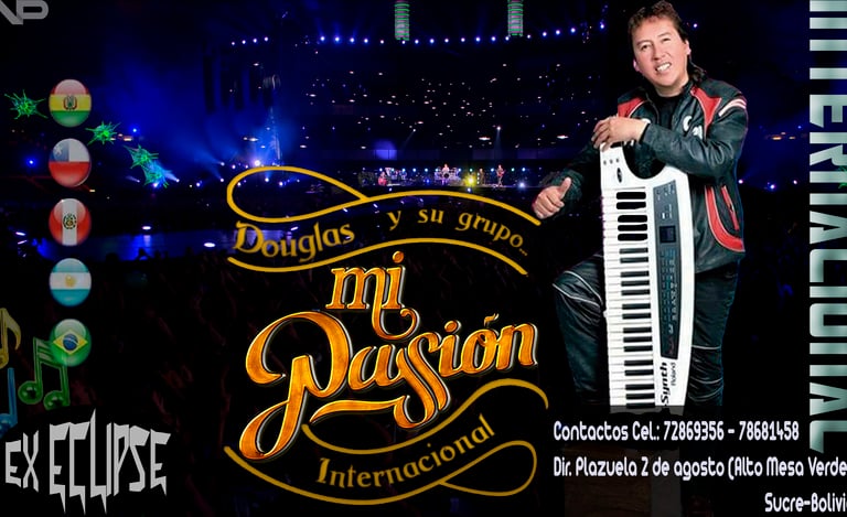 Hola! Soy Douglas... escritor y compositor de música tropical con alma vibrante y ritmo contagioso, creador del grupo Internacional "Mi Pasión" de Sucre - Bolivia xEclipse.
